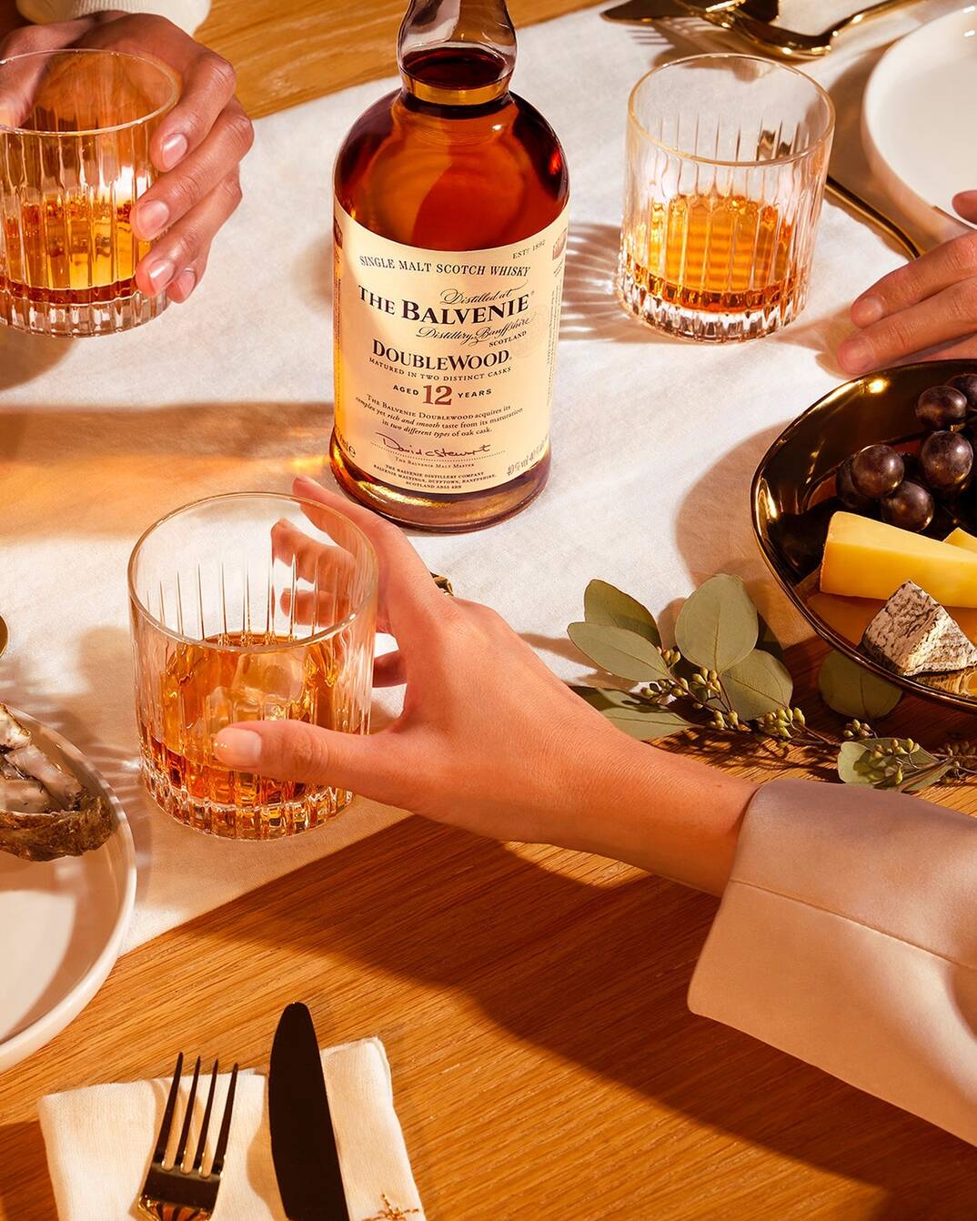 Crafted using a traditional two-cask maturation process, The Balvenie DoubleWood 12 spends most of its life in American oak ex-bourbon barrels, imparting soft sweetness and honeyed character. It is then finished in European oak sherry casks that bring richness, complexity, and a hint of dried fruit. This double maturation technique, pioneered by The Balvenie, gives the whisky its signature depth and balance.